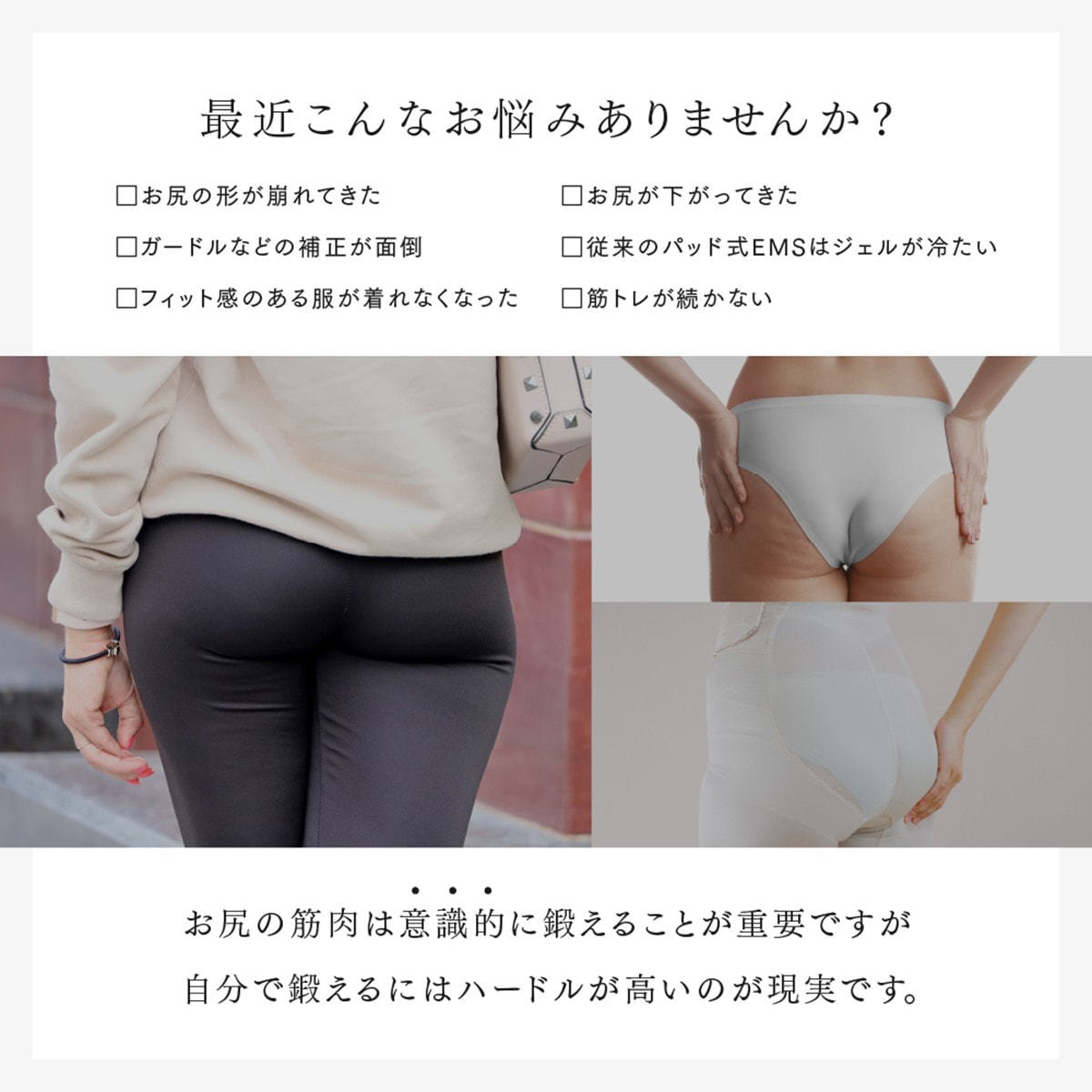 お尻で悩む全ての方へ向けた全く新しいEMSヒップトレーニングマシーン。